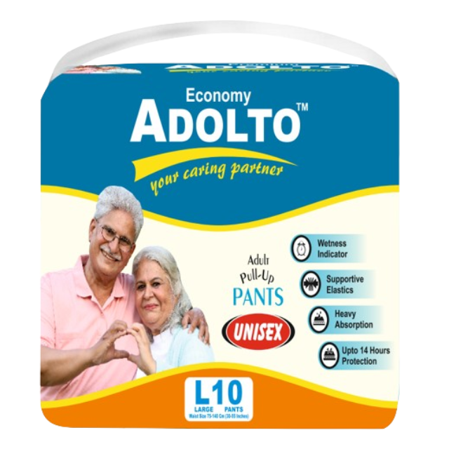 Adolto Pull Up Pants Economy L10 Unisex Adult Diaper Pants with Wetness Indicator, Supportive Elastics, Heavy Absorptionn