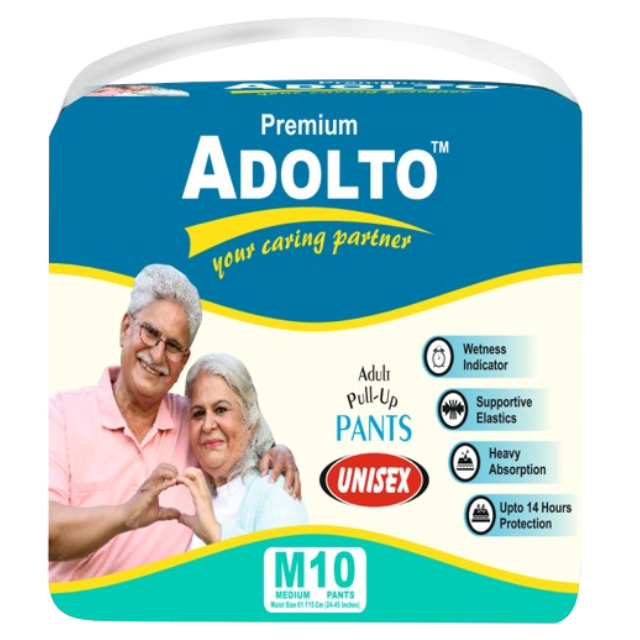 Adolto Pull Up Pants Premium a M10 Unisex Adult Diaper Pants with Wetness Indicator, Supportive Elastics, Heavy Absorption, Cotton Comfort